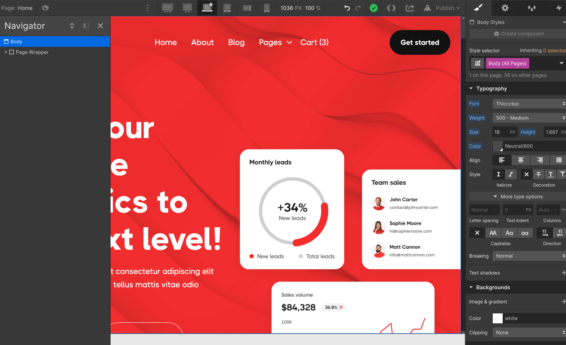 Everytime you make a change (for example, you create a new section design), it's a good practice to go to your Viewport top navigation and see how it looks on Tablet and Mobile.